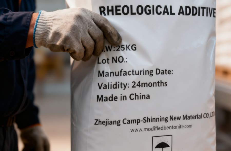 Packing of organoclay bentonite rheological additive : 25Kg/Bag,22.68kg (50lb)/Bag, 1MT/bag or 500kg/Bag. Kraft paper bag with PE liner or multi-wall paper sacks or customized.
